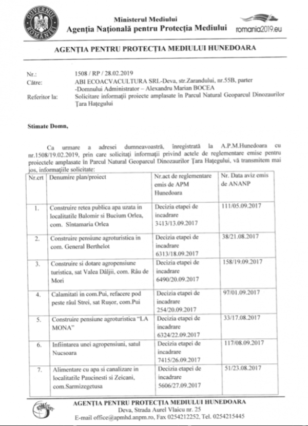 Adresă APM cu privire la alte investitii nr.1508.RP 2019