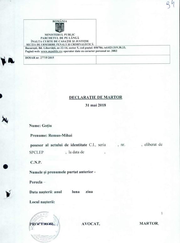 » Declarație de martor 31.05.2018 Gotiu Mihai