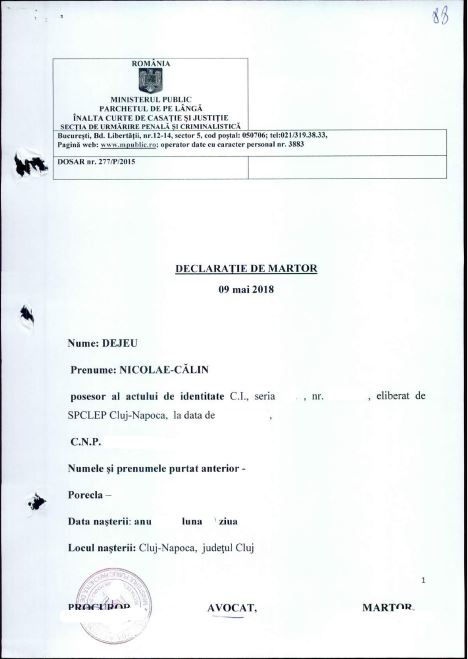 » Declaratie de martor Dejeu Nicolae Calin 09.05.2018