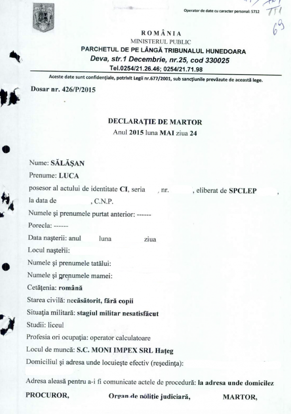 Proces verbal de consemnare a plangerii 17.05.2015 Salasan Luca