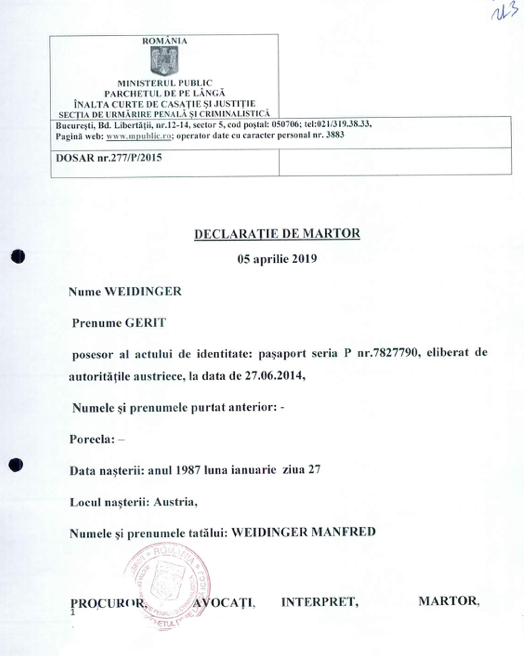 » Declarație de martor Weidinger Gerit 05.04.2019