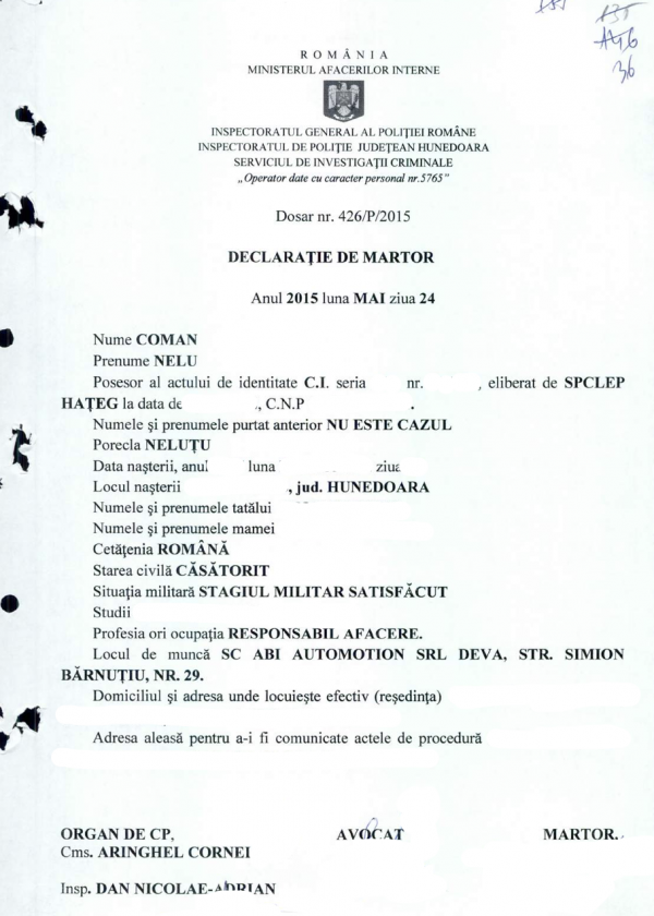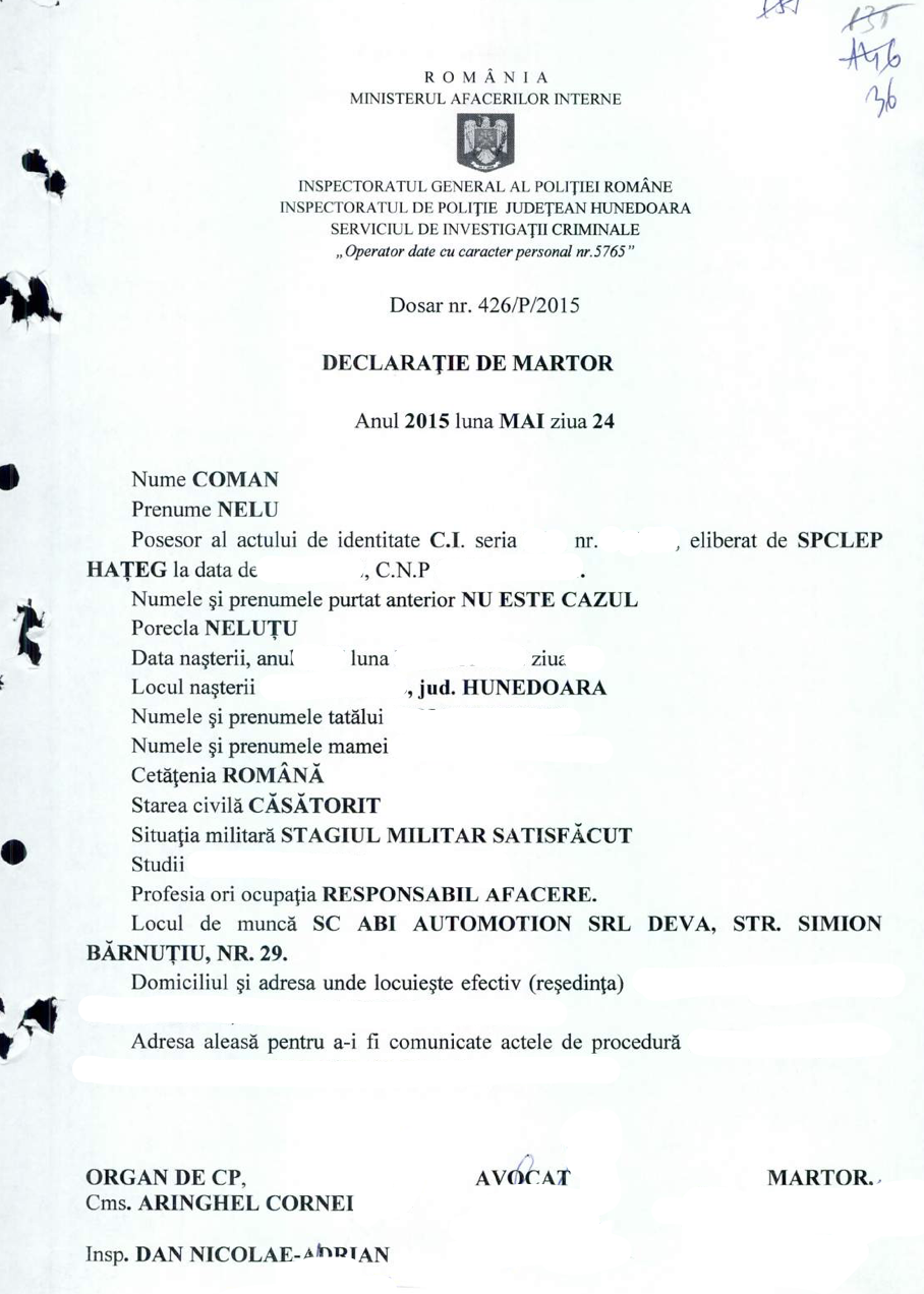 » Declaratie martor Coman Nelu 24.05.2015 Din pozitia in care ma aflam