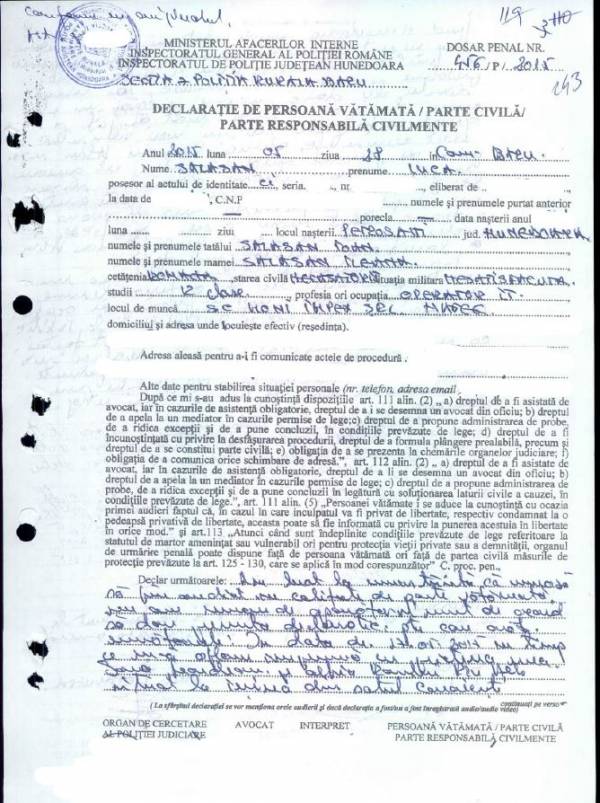 » Declaratie persoana vatamata Salasan Luca 28.05.2015