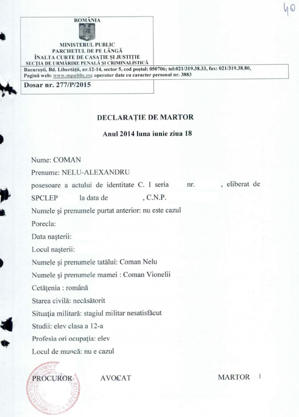 » Declaratii Coman Nelutu Alexandru 18.06.2015