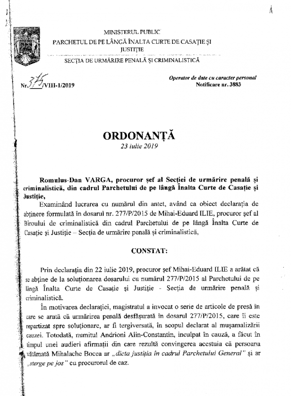 » Ordonanta 23.07.2019 - Respingere declaratie de abtinere
