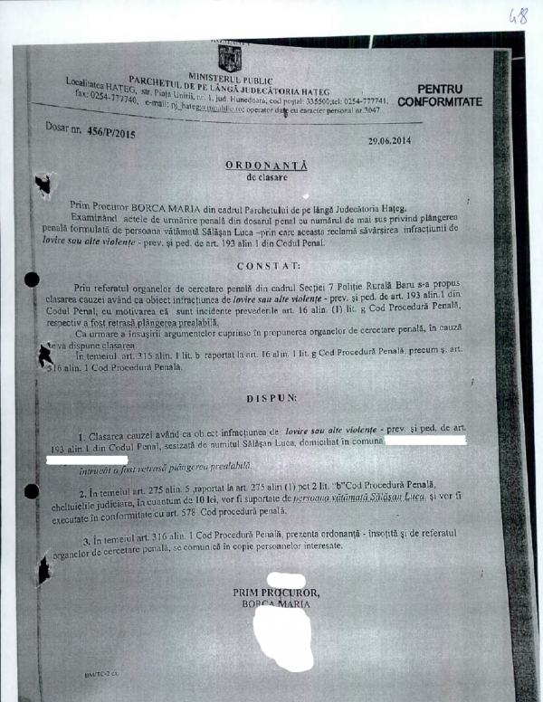 » Ordonanta de clasare 29.06.2014