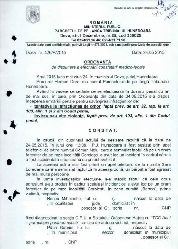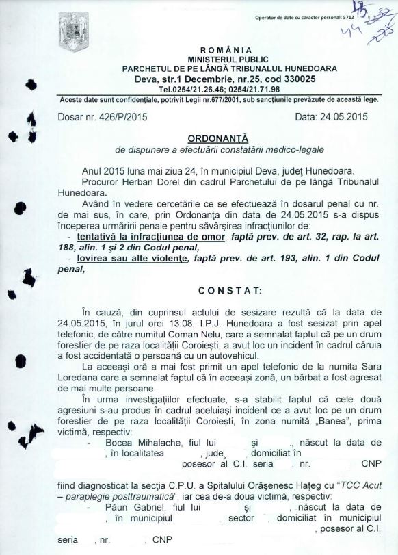 » Ordonanta de dispunere a efectuarii constatarii medico legale 24.05.2015