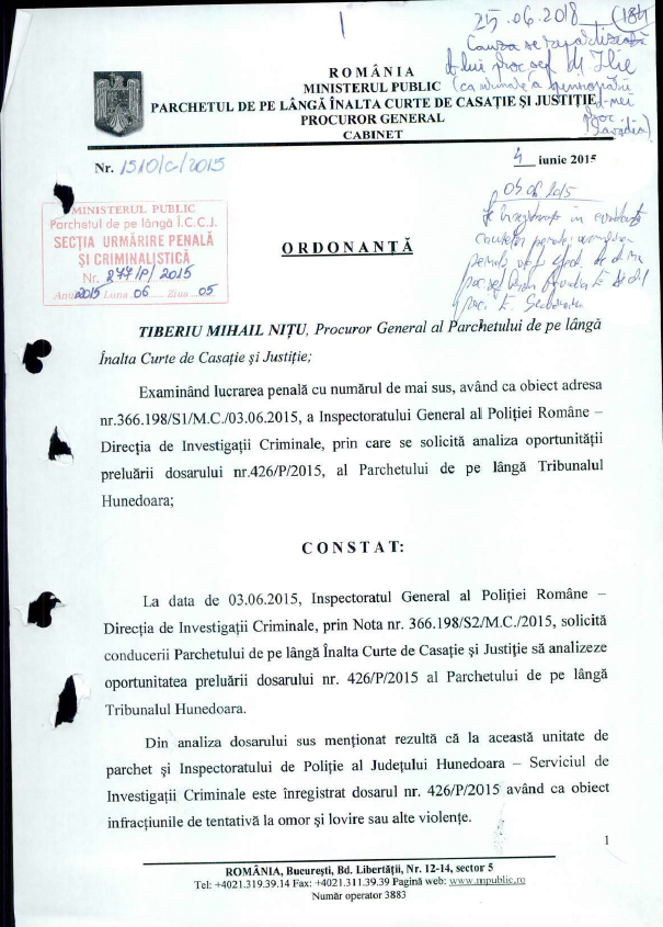 » Ordonantele pentru mutarea dosarului la Inalta curte de casatie si justitie