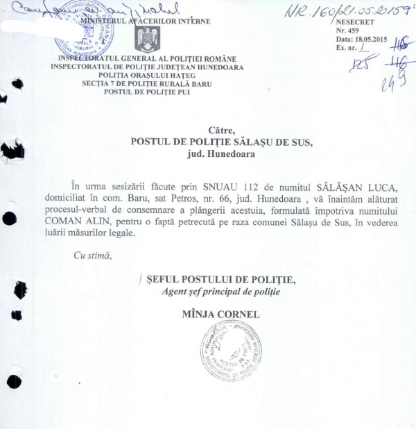Proces verbal de consemnare a plangerii 17.05.2015 Salasan Luca