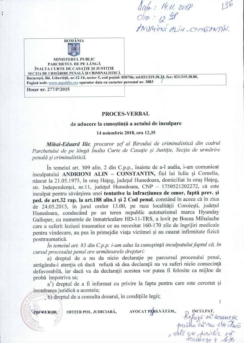 » Proces verbal de aducere la cunostinta a actului de inculpare 14.11.2018