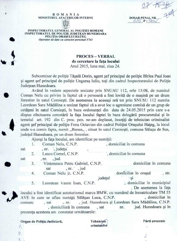 Proces Verbal de cercetare la fata locului 24.05.2015