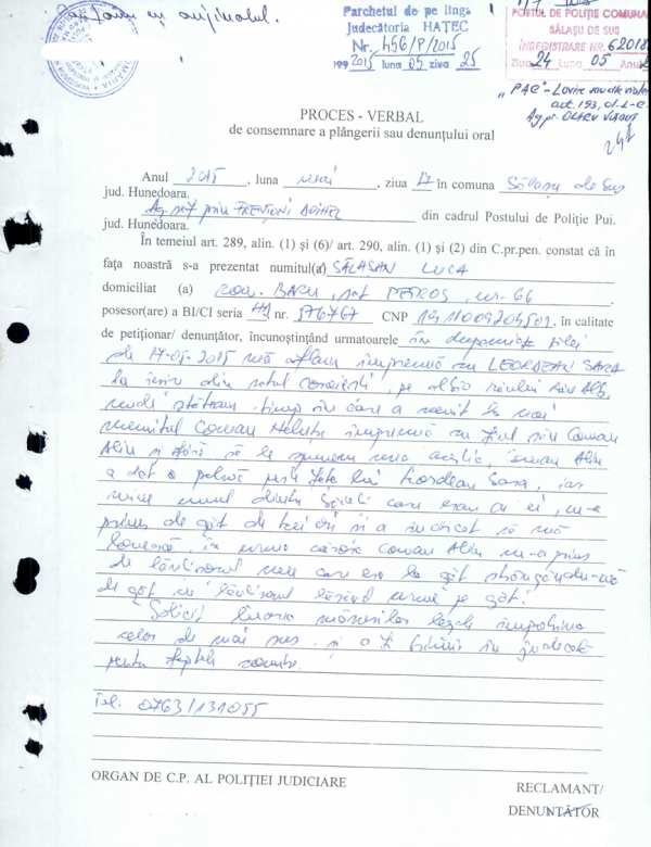 » Proces verbal de consemnare a plangerii 17.05.2015 Salasan Luca